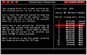 NOTE: For printing of this report to satisfy accounting controls, ALL journals must be printed by accepting the default, and may only be printed for one period.