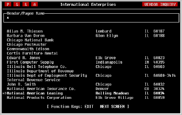 vendor's name and press [RETURN]. A list of vendors whose names begin with