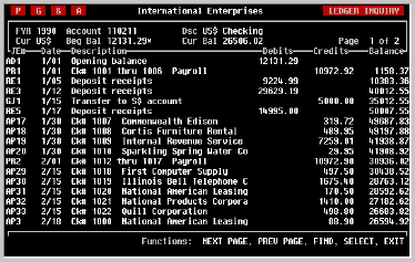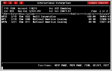 | Changing Pages | When the last page of transactions has been displayed, you can use the PREV SCREEN and NEXT SCREEN keys to page back and forth through the transactions in the account. | |||||||||||||||||||||||||||||||||||