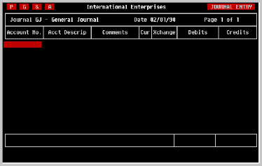 Once the journal and entry date have been entered, the cursor will move