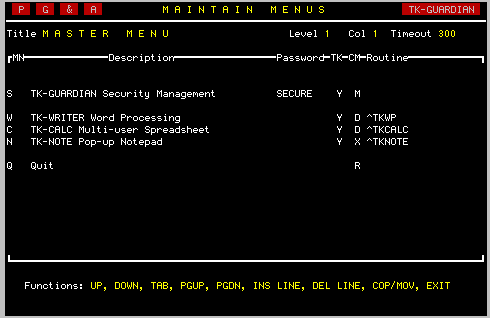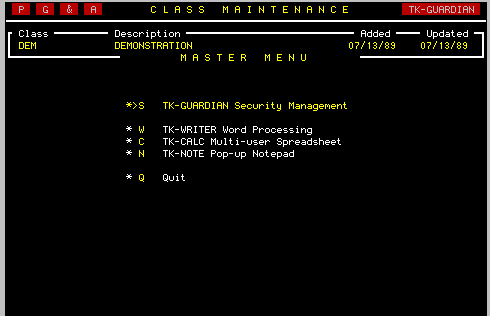 option on the TK-GUARDIAN Security Management menu, and pressing [RETURN].