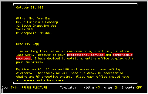 ADDRESS+SALUTATION+BODY All three sections would be assembled on the screen for you. Note that you can have any number of sections from which to choose.