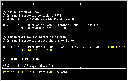 from the cursor position to the end of the routine line.