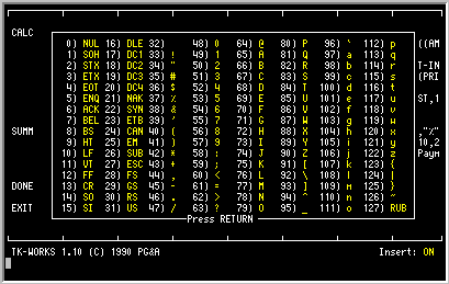 these include an ASCII reference chart and a pocket calculator, as