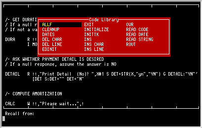 current routine. Note that text is added to the code library using the
