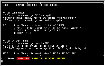 Note that some utilities are limited to certain sources. Because of this, not all the sources shown above will be available for each utility. The process of selection, however, remains the same. Type the first character of the desired source, or use the cursor movement keys to move the selector to highlight it and press [RETURN]. If you select workspace as the source, routine selection is complete since the workspace can contain only one routine. If the selected source is a release, proceed to Step 3.