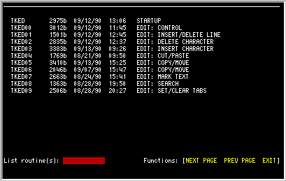 Routine Selection | All routine selection in the TK-WORKS' utilities operate in the same manner. Once you have become familiar with the steps involved, you will find the process to be both powerful and easy-to-use. | |||||||||||||||||||||||||||||||||||||||||||||||||||||||||||||||||||||||||||||||||||||||||||||||||||||||||||||||||||||||||||||||||||||||||||||||||||||
