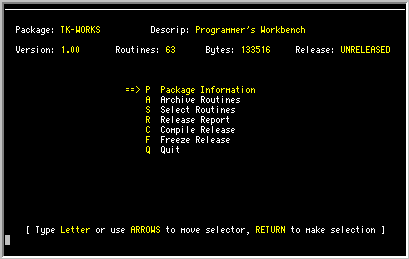 it. | One unique advantage to TK-WORKS' design is that commonly used routines can be part of an unlimited number of packages. This promotes the development and use of routines which perform common tasks, a technique sometimes referred to as modular programming. When a package is frozen through the release process, as described in the following pages, the routines that belong to it also become frozen. Frozen routines can still be loaded, edited, saved and archived, but a new archive version is created and the earlier frozen version is no longer changed. As a result, earlier versions of any package can quickly be retrieved for any purpose, including recompilation, with complete confidence that they will perform exactly the way they did when they were first released.
